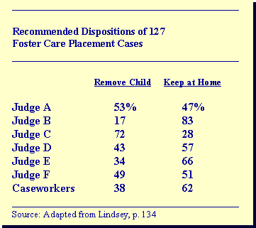 In examining 127 child placement cases, the researchers found considerable disagreement between not only judges and caseworkers, but between judges themselves.