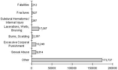 Where does all of this lead us? Roughly back to where we began. Approximately 3 percent of the founded determinations indicating severe physical abuse, with the remainder involving various forms of minor physical abuse, often stemming from alleged excessive punishment; sexual abuse; neglect, such as caretaker absence; with the majority of the cases involving maltreatment, such as "deprivation of necessities" or failure to provide an adequate home environment.[14]